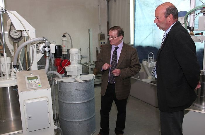 Diese und viele weitere Informationen erfuhr heute Landrat Joachim Claus (CDU) bei einem Betriebsbesuch in der ROCO AG. Was wir hier produzieren sind fast alles Sonderanfertigungen, so Geschäftsführer Karl Crämer. Je nach Kundenwunsch werden die Maschinen speziell zugeschnitten, die dann je nach Rezept Wasser und Gips meist unter Vakuum mischen. Diese Kunden sitzen in ganz Europa, von Portugal über Frankreich bis Rumänien.