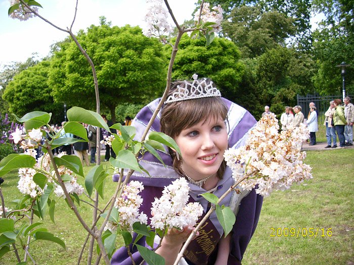 Während Sie im Bild oben noch die derzeitige Fliederkönigin Nicole II sehen, wird am Sonntag ab 13:30 Uhr im Kurpark das traditionelles Pflanzen eines Fliederbaumes durch die neu gewählte Fliederkönigin erfolgen, mit anschießender Autogrammstunde.