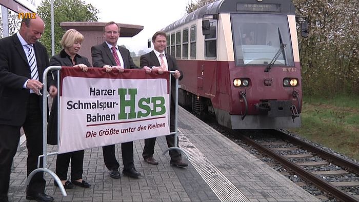 Autor: aglEs ist die inzwischen sechste Station der Harzer Schmalspurbahn (HSB) im Stadtgebiet Nordhausens, und die 48. auf der insgesamt 140 kilometer langen Strecke des kommunalen Beförderungsunternehmens. Im Beisein von Oberbürgermeisterin Barbara Rinke (SPD), Landrat Joachim Claus (CDU) und weiteren Vertretern aus Wirtschaft und Politik, eröffneten der Abteilungsleiter der Nahverkehrsservicegesellschaft Thüringen (NVS) Thomas Grewing und der Geschäftsführer der HSB, Matthias Wagener, die neue Haltestelle.