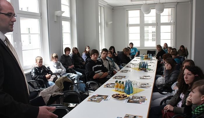 15 Schüler des Gymnasiums Nummer 4 aus Nordhausens polnischer Partnerstadt Ostrow-Wiekopolski hat heute Bürgermeister Matthias Jendricke (im Bild) im Rathaus empfangen. Was die jungen Polen in Nordhausen noch so "anstellten", das hat die nnz erfahren...