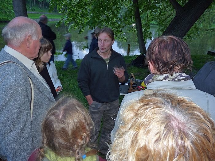 Viele Besucher zog es in den Schlosspark zu den Ausführungen über die heimischen Fledermäuse. Gespannt lauschte man Lothar Hörning, der ja zusammen mit Cheffledermaus Wolfgang Sauerbier ein Buch über die Flattertiere herausgebracht hatte (kn berichtete). Die aufgespannten Netze waren allerdings nur zur Dokumentation aufgestellt. Wegen der Trächtigkeit der Fledermausdamen, sollte keine Tiere gefangen werden.
