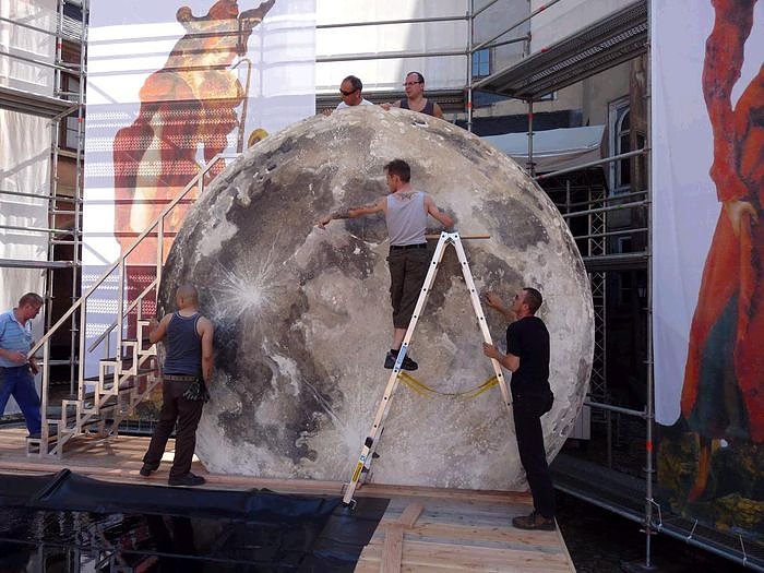 Autor: nnzWenn die Extra-Bühne für das Loh-Orchester aufgebaut ist, beginnt der Aufbau der einzelnen Teile für das Bühnenbild. Dafür ist die gesamte Bühnentechnik im Einsatz, die Männer und Frauen tauschen für eine Weile ihren Arbeitsplatz im Theater mit dem im Schlosshof. Dort sind sie – wie auch die Leute auf dem Bau – dem Wetter ausgesetzt.