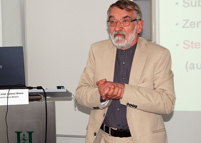 Beim Vortrag: Osteoporose - Alterserscheinung oder ernstzunehmende Krankheit?, gehalten von Herrn Professor Dr. Helmut W. Minne, Arzt für Innere Medizin - Endokrinologie, Bad Pyrmont, reichte der Hörsaal nicht, so dass eine Direktübertragung in die Rückenschule der Klinik erfolgte.