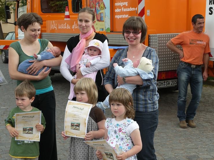 Autor: aglIn der Sage bringt Meister Adebar die Kinder. In Görsbach hat man das ein bisschen anders gemacht, und die Kinder zu ihm gebracht. Den 3 Jungvögel, die sich derzeit im Nest befinden, wurden zur feierlichen Beringung 3 Paten an die Seite gestellt. Die drei Kinder aus dem Görsbacher Kindergarten "Kleine Störche" waren sichtlich stolz auf die Ehrung. Neben den Kindergartenkindern waren aber noch jüngere Besucher zugegen. Bürgermeister Siegfried Junker überreichte 100 Euro aus seinem Privatbesitz an die Mütter dreier Neugeborener Görsbacher. Der jüngste ist 6 Wochen jung, und sozusagen gerade erst aus dem Schnabel des Klapperstorches entwischt.