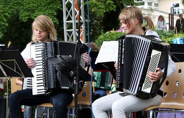 Das Sinfonieorchester gründete Direktor Holger Niebhagen vor sieben Jahren neu, der die jungen Musiker auch heute dirigierte. Auf der Bühne im Park zeigten beispielsweise das Akkordeon-Ensemble, Geigen- und Klavierschüler ihr Können. Dass die Kinder und Jugendlichen im Unterricht der Kreismusikschule nicht klassische Musik lernen, zeigten die Bands mit E-Gitarren, Bass und Schlagzeug bei ihren Auftritten.