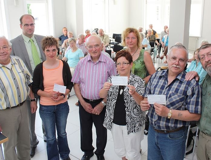 Wie in jedem Jahr zeigten sich auch in diesem Jahr die Bochumer wieder großzügig: Im Namen der Bochumer Vereinsmitglieder überreichte der Vorsitzende Paul Schrader (4.v.l.) drei Schecks in Höhe von jeweils 750 Euro. Diese Summe kommt dem Verein Tschernobyl-Kindern zugute, dem Verein Autismus Südharz sowie dem Hospiz-Verein Nordhausen.
