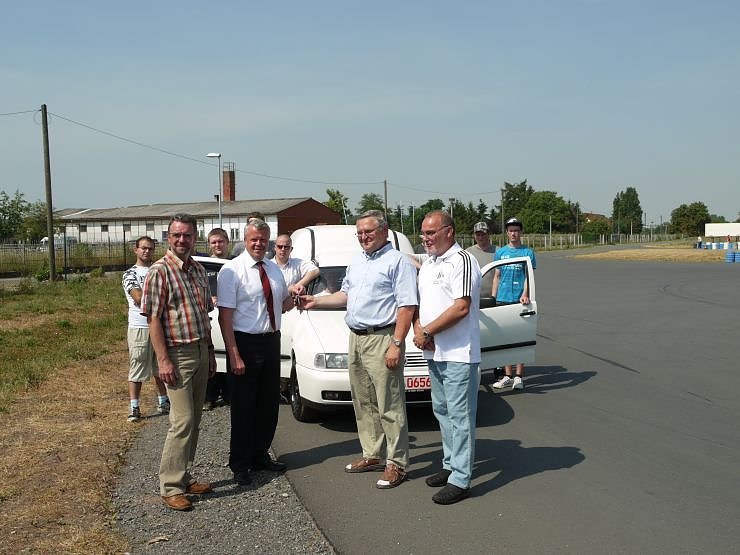 Das Berufsbildungszentrum Straßenverkehr (BBZ) übergab dem Kreis-Sport-Bund (KSB) heute Mittag bei schönstem Sommerwetter einen wieder hergestellten VW Caddy, der die Jugendarbeit der KSB unterstützen soll.