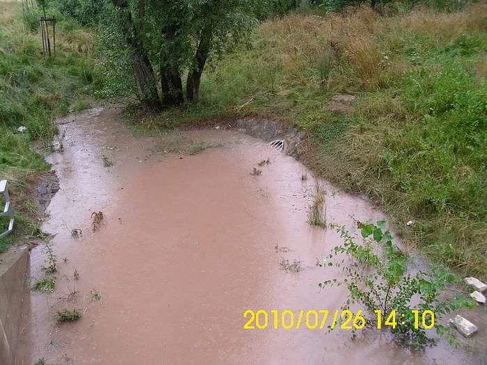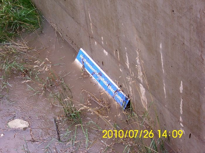 Gestern schüttete es am frühen Nachmittag wie aus Kannen. nnz-Leser Frank Tabatt hatte sich da mal das Regenrückhaltebecken der Gumpe angesehen.