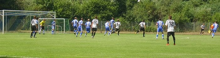 Von nun an bekam die Wackerelf den Kontrahenten immer besser in den Griff und erspielte sich eine optische Überlegenheit. In der 41. Min. trat Töpfer eine Ecke, der Ball gelangte zu einem seiner Mitspieler und das Geschoss knallte an die Querlatte des Tores der Gastgeber.