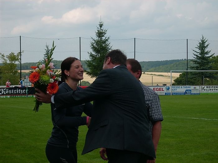 Wer in dem Bild allerdings wem gratuliert ist auf den ersten Blick nicht zu ersehen. Zwar gratulierte der Bürgermeister Linda Stahl zu ihrem Erfolg, sie revanchierte sich allerdings mit einem Glückwunsch an den Bürgermeister. Joachim Kreyer hatte heute Geburtstag.