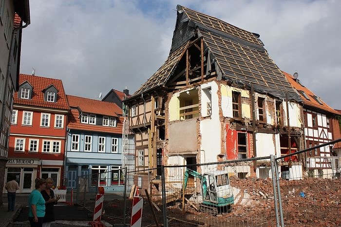 Aktuell macht das Haus einen dramatischen Eindruck. Einerseits stimmt dieser Eindruck: Die `Flohburg´ war einsturzgefährdet. Das Gebäude hatte sich in Richtung Barfüßer Straße geneigt und wäre eines Tages nicht mehr zu retten gewesen. Allerdings ist andererseits das Gegenteil der Fall: Die Reduktion des Gebäudes auf seinen historischen Ursprung ist die Grundvoraussetzung dafür, dass eines der wertvollsten und ältesten Gebäude der Stadt als stadthistorisches Museum in neuem Glanz wieder auferstehen kann.