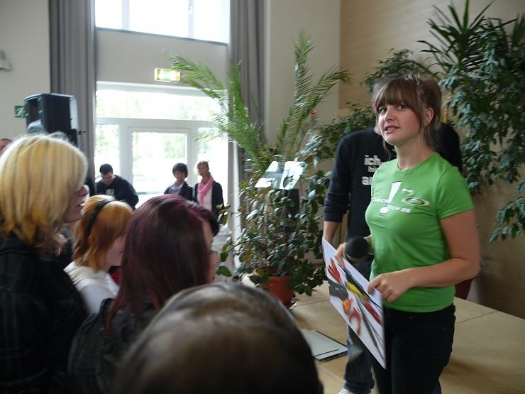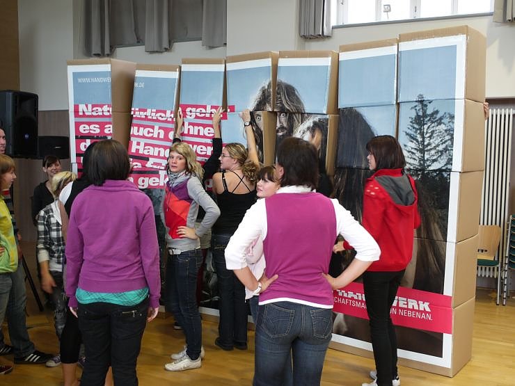 Restlos begeistert waren die Berufsschüler nicht gerade. Die Mehrheit betrachteten eher teilnahmslos wie ihre Mitschüler in der großen Pause an der Aktion der Handwerkskammer Erfurt und des Radio Top 40 Teams teilnahmen, und die Abwechslung im Schulalltag genossen. Zu Populärmusik versuchte Moderatorin Manu auch den Rest zum Mitmachen zu animieren.