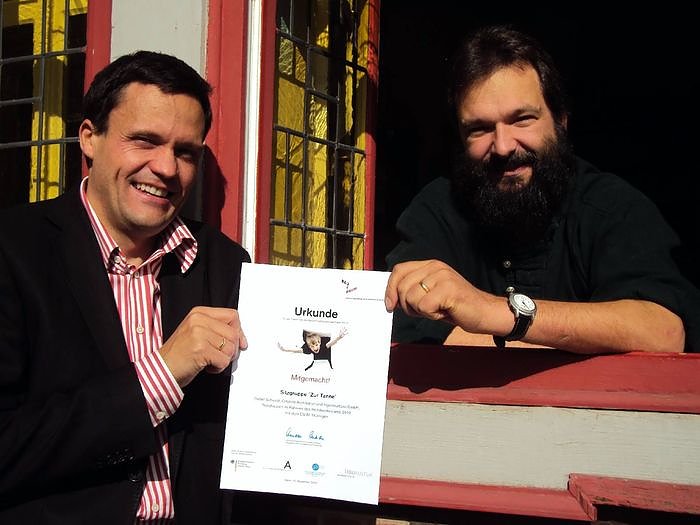 Mit der Urkunde erhielt das Büro nun seine Ehrung für die Schaffung dieser neuen Sitzgruppe und das freiwillige Engagement. Die Kinder erhielten die Möglichkeit, am Entstehungs- und Gestaltungsprozess teil zu nehmen. Anregungen aus dem eigenen Lebensumfeld heraus zu erhalten, Entstehungsprozesse zu entdecken, Gestaltungsformen wahrnehmen und selbst anpacken, das waren einige der Schwerpunkte der Kampagne.