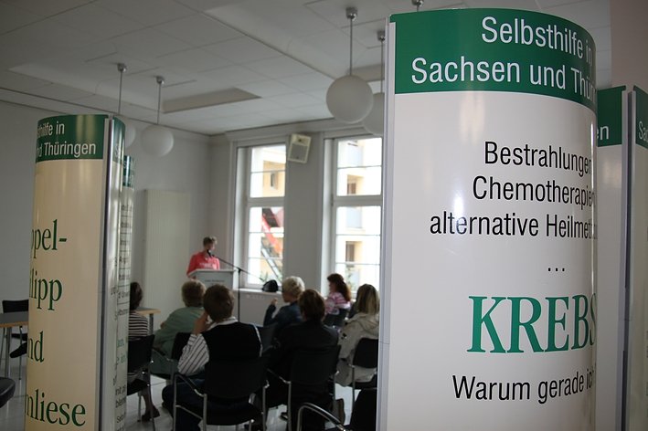 Außerdem ging es heute in einem weiteren Referat um das Leben mit Sehbeeinträchtigung, in dem Mitglieder der Kreisorganisation Nordhausen des Blinden- und Sehbehindertenverband Thüringen e.V. Rede und Antwort standen. Mehrere Informationsstände, beispielsweise von den Selbsthilfegruppen Kehlkopferkrankte/Südharz und der AG Nordhausen der Deutschen-Rheuma-Liga ergänzten die Vorträge.