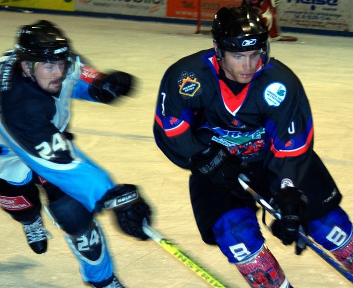 Autor: nnzZwei der schnellsten Skater der Liga im Duell: Braunlages Stefan Bilstein (links) wird sich im Pokal auf ähnliche Gegenwehr einstellen müssen wie beim Spiel gegen die Hannover Braves mit Matt Cook