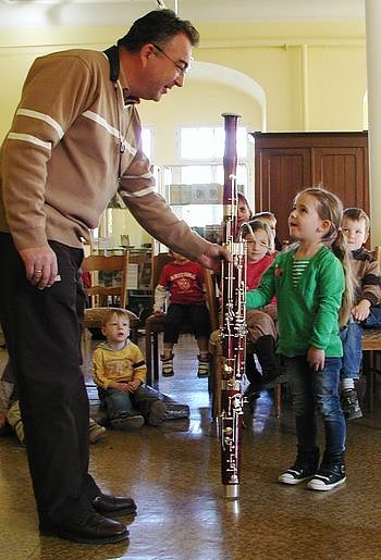 Im Anschluss kam es noch zu einer netten Plauderrunde zwischen Kindern und Musikern. Gestaunt haben die Kinder auch, dass beispielsweise das Fagott um einiges größer ist als sie.