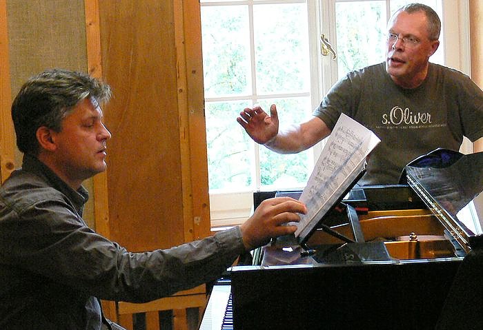 Frank Sieckel (re) probt mit Markus L. Frank das Hexenlied