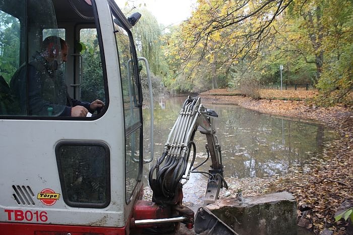 Autor: nnzAm Ententeich werden die Betonröhren vom Zulauf entfernt