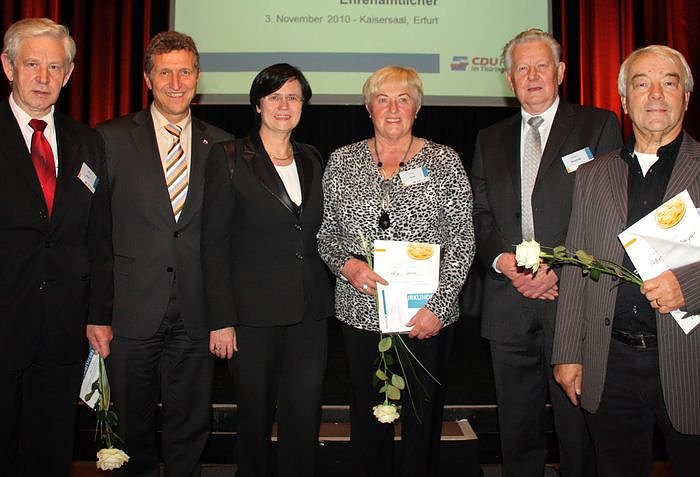 71 Thüringerinnen und Thüringer nahmen ihre Auszeichnung im Erfurter Kaisersaal von Ministerpräsidentin Christine Lieberknecht und vom CDU-Fraktionsvorsitzenden Mike Mohring, entgegen. Die Laudationes wurde von dem Stellvertretenden CDU-Fraktionsvorsitzenden, Dr. Klaus Zeh, gehalten.