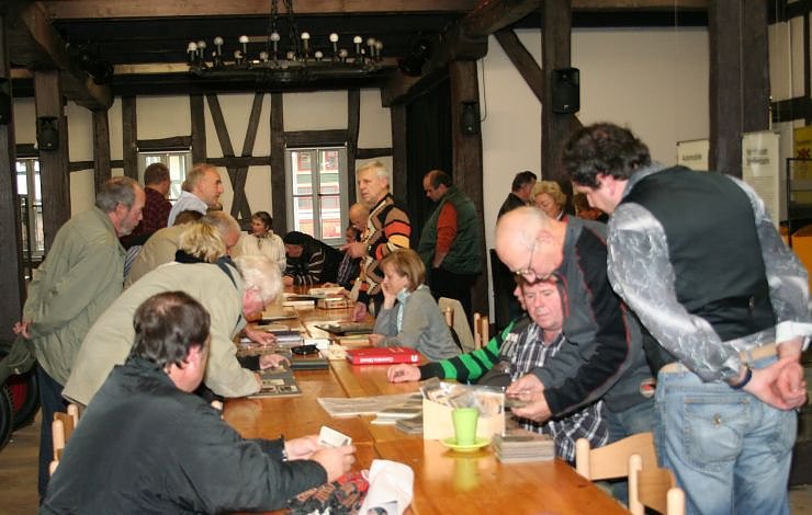 Etwa 45 Philokartisten aus Ellrich, Neustadt, Ilfeld, Niedersachswerfen, Nordhausen und sogar aus Ilmenau waren zum 25. Treffen der Nordhäuser Ansichtskarten-Sammler ins Museum Tabakspeicher in der Bäckerstraße gekommen, um Karten zu tauschen, zu verkaufen bzw. zu kaufen, die wertvollen Sammlungen zu betrachten und ihre Kenntnisse über die Geschichte der Rolandstadt zu vertiefen.