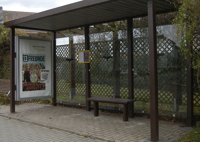 In der Hohekreuzstraße bietet ein Wartehäuschen den Fahrgästen der Stadtbuslinie A jetzt Schutz vor Regen, Wind und Schnee. Die Unterstellmöglichkeit wurde am oberen Ende des Stresemannringes aufgestellt...