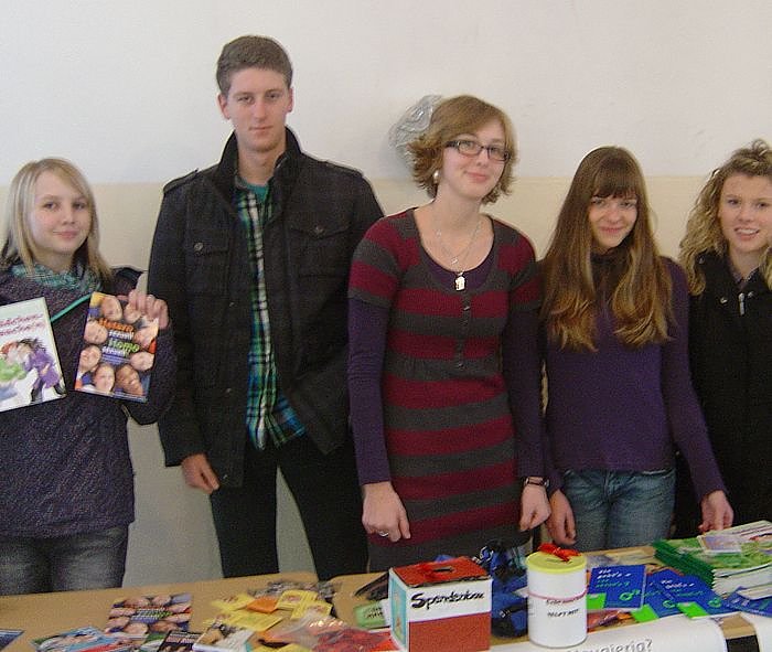 Autor: nnzKathrin Wolf und ein von HIV Betroffener leiteten einen Gesprächskreis mit Schülern der 11. Klassen. Um gegen diese Krankheit auch selbst aktiv zu sein, verteilten die Schüler dieser Klassenstufe in allen Pausen Informationsmaterial an ihre Mitschüler und sammelten in diesem Zusammenhang Spenden für die AIDS- Hilfe.