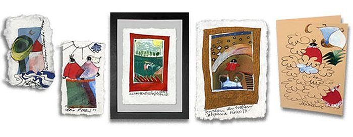 Von der gesteuerten Improvisation angeregt, werden aus diesen entstandenen Blättern durch Gouache-, Aquarell- oder Acrylmalerei künstlerische Arbeiten, die von materieller Sinnlichkeit, farbiger Aufregung und individueller Fantasie leben.