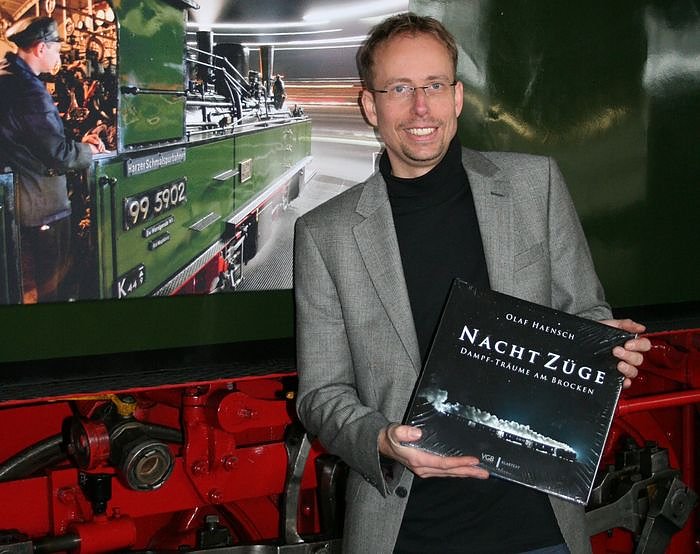 Mit einer Multimedia-Präsentation hat der Fotograf Olaf Haensch heute - genau 175 Jahre nach der ersten deutschen Eisenbahnfahrt – im Bahnbetriebswerk der Harzer Schmalspurbahnen GmbH (HSB) am Wernigeröder Westerntorbahnhof stilgerecht sein neues Buch NachtZüge – Dampf-Träume am Brocken vorgestellt...