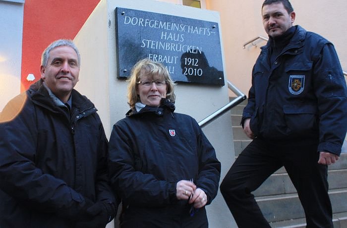 Am Wochenende übergaben Bau- und Wirtschaftsdezernentin Inge Klaan, Ortsteilbürgermeister Andreas Kruse und der Leiter der Berufsfeuerwehr, Gerd Jung, das neue Dorfgemeinschaftshaus in Steinbrücken an die Freiwillige Feuerwehr des Ortes sowie an alle Steinbrücker, denen der Neubau ab jetzt wieder als Domizil für Veranstaltungen und private Feiern dient.