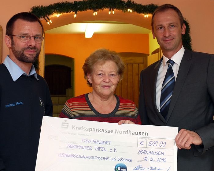 Autor: nnzDamit wollen wir auch in diesem Jahr unser Engagement für die Schwächsten der Gesellschaft dokumentieren”, sagt WBG-Vorstand Sven Dörmann, der den symbolischen Scheck gemeinsam mit Manfred Mock übergeben hatte. Mock ist bei der Genossenschaft als Sozialarbeiter tätig und kennt unter den über 7.000 Mitgliedern natürlich auch soziale Probleme vieler Familien.