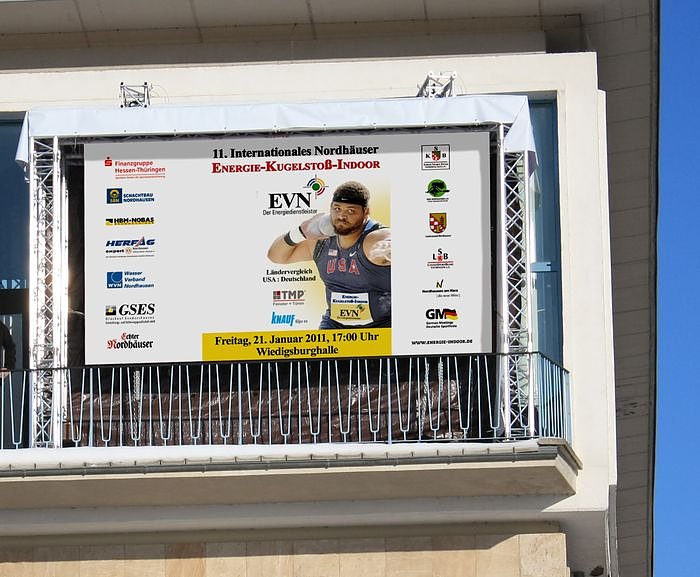 Autor: nnzErstmals wird eine 4 x 5 m große LED – Wand eines Nordhäuser Unternehmens zum Einsatz kommen. Dadurch wird ein hautnahes Erleben der weltbesten Kugelstoßer für die erwarteten 2000 Zuschauer ermöglicht.