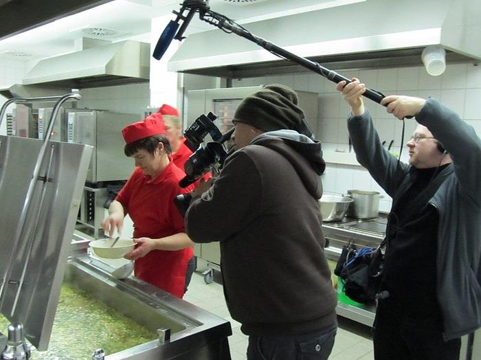Bereits früh hielten die Kameras jeden Handgriff im Kochhaus fest. Tagesablauf besprechen, Zutaten für drei verschieden Menüs vorbereiten, Anlieferungen prüfen, Zutaten verarbeiten, Kundenlieferungen bereitstellen,