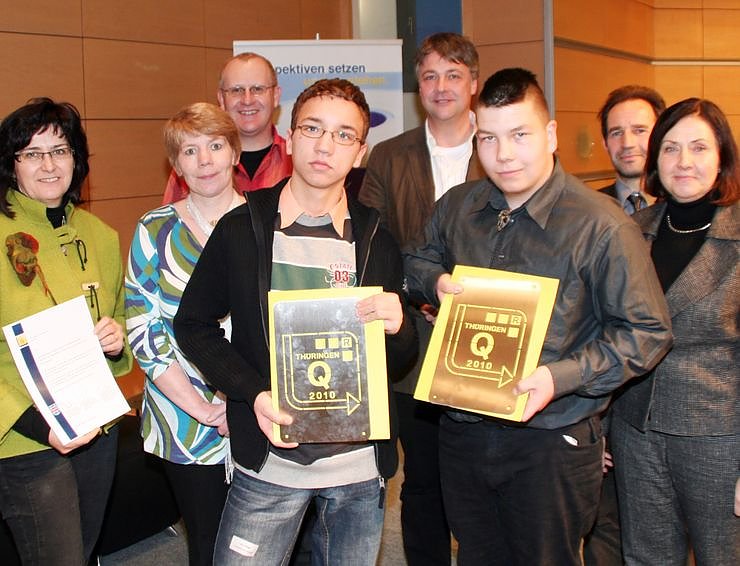 Bei der Preisverleihung - in Gegenwart des Ministers für Landwirtschaft, Jürgen Reinholz und dem Minister für Bildung, Wissenschaft und Kultur, Christoph Matschie - konnten die Vertreter der Schulen erleben, wie gut das Zusammenspiel zwischen der Thüringer Wirtschaft und der Schulen im Interesse der Ausbildungsperspektiven der Jugendlichen funktioniert.