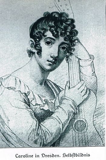 F. A. Wolf besuchte alljährlich seine Kinder und brachte interessante Freunde mit; berühmte Komponisten und Virtuosen wie Zelter, Spohr, Hermstedt u. a. ... Caroline ... gewann sich Freunde, sie wurde geschätzt, gesucht, gehätschelt. Nun konnte sie es sich mit dem Verdienst leisten, 1813 nochmals nach Dresden zur Fortsetzung des Kunststudiums zu gehen. Wird fortgesetzt