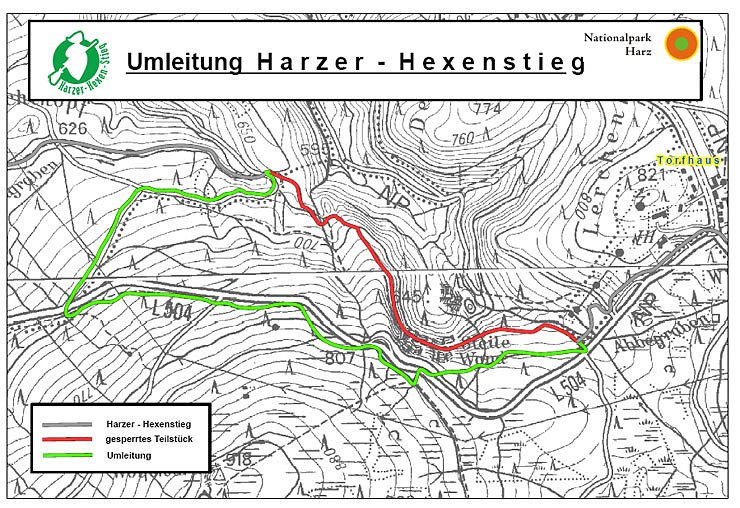 Um die Durchgängigkeit des Harzer Hexenstieges, dessen Teil der Magdeburger Weg ist, zu gewährleisten, wird für die Dauer der Sperrung eine Umleitung angeboten (siehe beiliegende Karte), die auf entsprechenden Schildern direkt vor Ort und auch auf der Homepage des Nationalparks bekannt gegeben wird. Sobald die Möglichkeit besteht, wird der Magdeburger Weg wieder frei gegeben. Alle Wanderer werden um