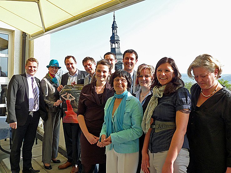 Mit der Benefiz Gourmet Gala am 5. Mai 2011 im Achteckhaus von Schloss Sondershausen beginnt eine neue Veranstaltungsreihe zugunsten regionaler Bauwerke. Das man sich heute im Hotel "Residenz" in Bad Frankenhausen traf, war dabei kein Zufall. Bernd Jurke (2. v. r) und der Geschäftsführer und Sternekoch Ralf Kronmüller (re.) erläuterten mit dem schiefen Turm der Oberkirche, zu wessen Gunsten die diesjährige Gala stattfinden soll. In diesem Jahr wird aus aktuellem Anlass die Oberkirche Bad Frankenhausen mit den Spendenerlösen der Gala bedacht, im nächsten Jahr soll ein Baudenkmal von der Benefiz-Gala profitieren.