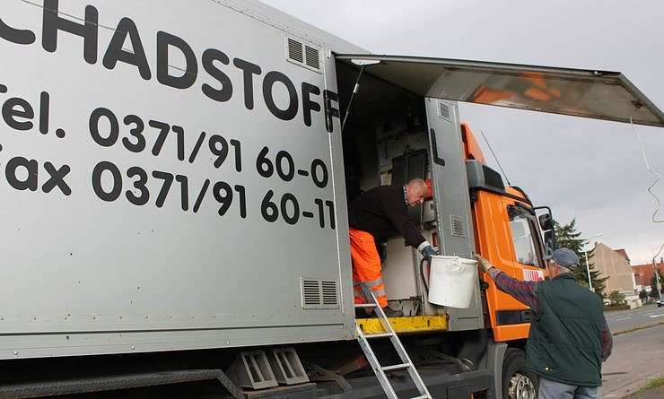 Am Schadstoffmobil können Privathaushalte Schadstoffe bis zu einer Menge von 100 Kilogramm pro Haushalt kostenlos und ohne vorherige Anmeldung abgeben. Anders verhält sich dies im Gewerbebereich, also bei Kleinbetrieben, Apotheken, Praxen, Kanzleien, Behörden, Bildungs- und Sozialeinrichtungen. Auch sie können gefährliche Abfälle abgeben, müssen dies jedoch spätestens drei Tage vorher schriftlich anzeigen. Das Formular zur Entsorgung gefährlicher Abfälle gibt es in der Abfallberatung im Landratsamt Nordhausen, Behringstraße 3, Zi. 304, oder online auf der Internet-Seite www.landratsamt-nordhausen.de unter Landratsamt - Formulare und Anträge. Im Gegensatz zu Privathaushalten ist die Entsorgung für Gewerbetreibende kostenpflichtig. Diese erhalten nach Beendigung der Tour eine Rechnung vom Landratsamt.