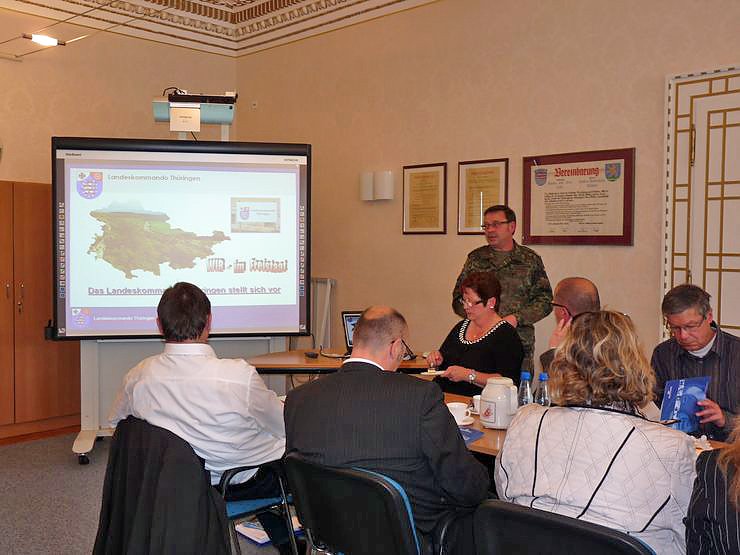 Bevor es zur Diskussion kam, ging es erst mal um die Einbettung der Nordthüringer Standorte innerhalb des Landeskommandos Thüringen. Dazu hatte man Oberstleutnant Horst Reddemann, Stellvertreter des Kommandeurs und Chef des Stabes des Landeskommandeurs Thüringen, zu einem ein Referat eingeladen.