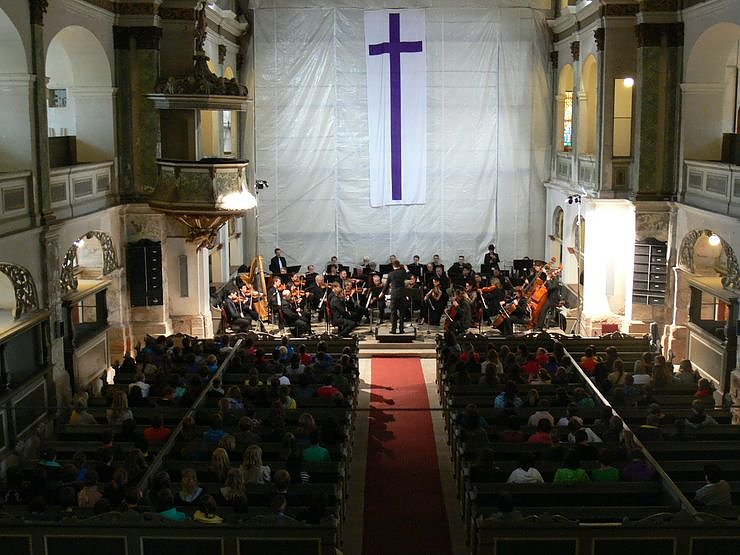 Unter dem Motto Musik rund ums Wasser erlebten die Schüler in der gut besuchten Unterkirche in Bad Frankenhausen die Hebriden-Ouvertüre von Felix Mendelssohn Bartholdy und Die Moldau von Bedrich Smetana. Kolja Hosemann, Studienleiter am Theater Nordhausen, dirigierte das Loh-Orchester Sondershausen und moderierte die Veranstaltung in einer lockeren Manier, die bei den Schülern Gefallen fand.