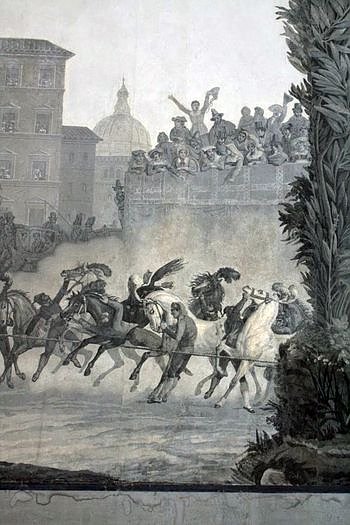 Der große Saal des Waldhaus Japan beherbergt seit mehr als zwei Jahrhunderten einen historisch beeindruckenden Schatz: Zwei Panorama-Tapeten mit Motiven aus der griechischen Antike und vom römischen Pferderennen zieren die hohen Wände. Hier die Einzelheiten...