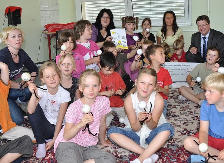 Besonders freut man sich über die Unterstützung der Paten, die mit einer Spende von jährlich 220 Euro der Klasse die Teilnahme an dem Programm ermöglichen: Wir bedanken uns ganz herzlich bei Thomas Seeber vom Vorstand der Kreissparkasse Nordhausen. Die Kreissparkasse hat die Patenschaft der Klasse 1a für vier Jahre übernommen, das sind 880 Euro. Und nicht nur das. Der Sponsor der Klasse 1b hat kurzfristig abgesagt und die Sparkasse übernahm auch die Patenschaft für die Klasse 1b für vier Jahre, so Frau Stöter.