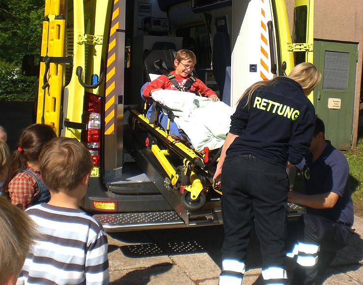 Ein herzliches Dankeschön gilt den Rettungsassistenten für die lehrreiche und interessante Unterweisung, die den Kindern sehr viel Spaß bereitete.