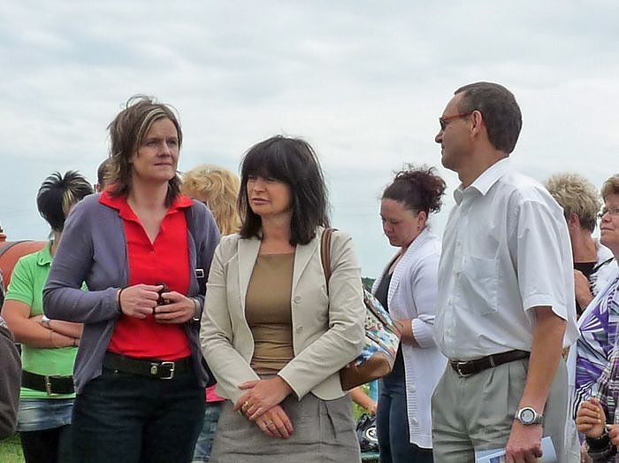 Ortsbürgermeisterin Antje Hochwind und die 1. Beigeordnete des Bürgermeisters von Sondershausen (hier mit Georg Schäfer) äußerten sich sehr zufrieden, was hier in jahrelanger Arbeit an der Mühle erreicht wurde.