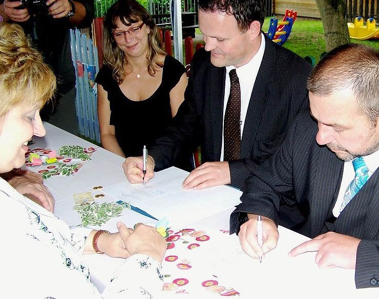 Und wenn schon mal eine Präsidentin der neuen Landgemeinde ihre Aufwartung macht, dann darf sie sich auch als erste in das neue Goldene Buch der Stadt eintragen. Gesagt, getan.