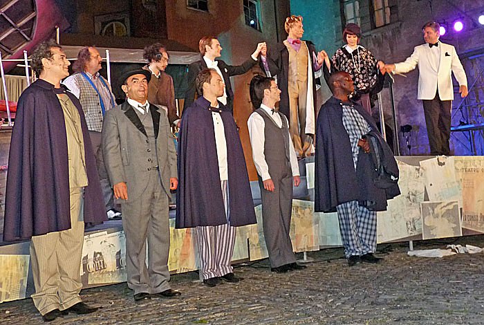Der Beifall zum Schluss viel ob der sehr guten Leistungen dem entsprechend stark aus, was mit zusätzlichem Trampeln mit den Füßen unterstützt wurde. Nicht vergessen sollte man die Jenigen, die nicht auf der Bühne standen, aber zum Schlussapplaus zum Teil auf die Bühne kamen: Regie Holger Pototzki, Ausstattung Bernhard Niechotz, Dramaturgie Juliane Hirschmann, Regieassistenz Christina Hennigs, Juliane Stephan, Organisationsleitung Anne-Kristin Schmidt. Ein Lob auch wieder der Technik, denn Beleuchtung und Ton waren, wie in den letzten Jahren sehr gut.