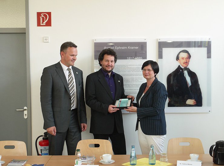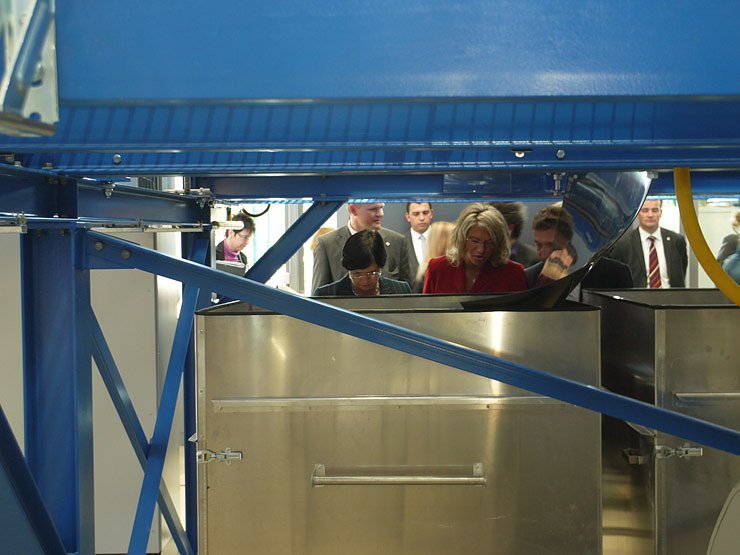 Im Tandem mit Prof. Dr. Volker Wesselak präsentiert er dabei einige Neuheiten aus den jeweiligen Forschungsgebieten. Im Beisein der Ministerpräsidentin wurde etwa das Projekt Leichtstofftechnik im August-Kramer-Institut gestartet. Als Kooperationspartner der Firma Schulz und Berger aus Altenburg, erforscht die Fachhochschule die Verbesserung von Mülltrennungsprozessen. Nebenher demonstrierten die Gastgeber Methoden zur Verbesserung von Photovoltaikzellen und der effizienteren Nutzung von Wärmespeichern.