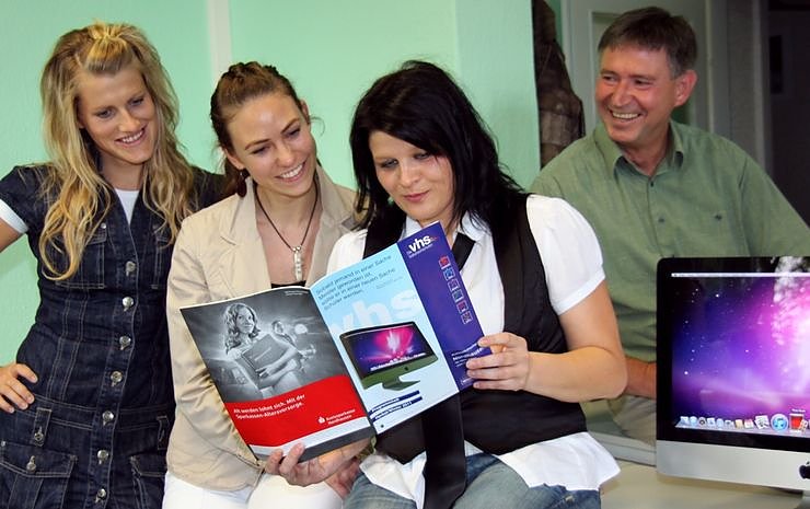 Stolz blicken sich die Mitarbeiter der Kreisvolkshochschule im neu ausgestatteten Computerraum um. Dort stehen zehn iMac-Rechner mit großen Flachbildschirmen, die so angelegt sind, dass darauf nicht nur Mac-Programme laufen, sondern auch die von Microsoft. Heute wurde aber nicht nur die neue Technik, sondern auch das neue Programm vorgestellt...