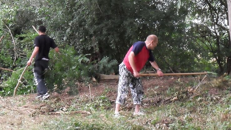 Jugendliche aus dem Projekt Sozialstunden für die Umwelt des Horizont-Vereins helfen dem Förderverein Apostelbrücke in Niedergebra.