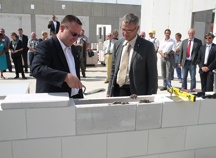 Autor: twBei einer Grundsteinlegung ist es Brauch, auf das Gelingen des neuen Projektes anzustoßen. Diese Tradition wollte auch die Bundesfachschule Kälte-Klima-Technik (BFS) nicht einfach übergehen und stellte gleichzeitig den ambitionierten Neubau seiner 3600 qm großen Einrichtung in Niedersachswerfen vor.