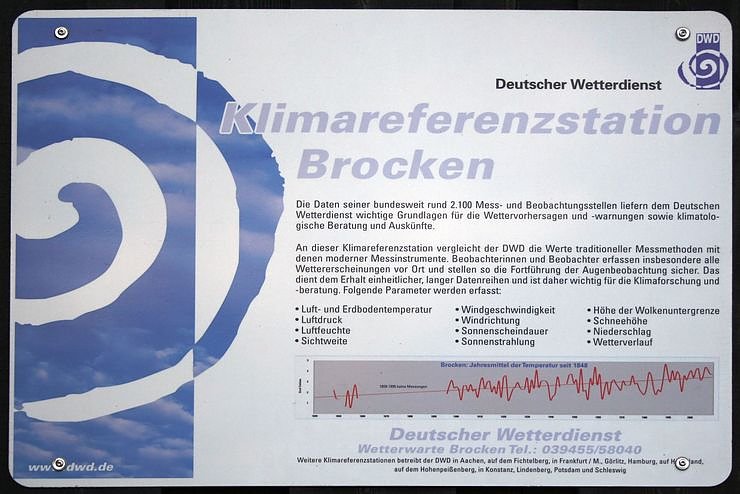 nformationstafel der Klimareferenzstation Brocken des Deutschen Wetterdienstes bei. Diese Wetterstation befindet sich unmittelbar neben dem Brockengarten und zeichnet den Klimawandel auf